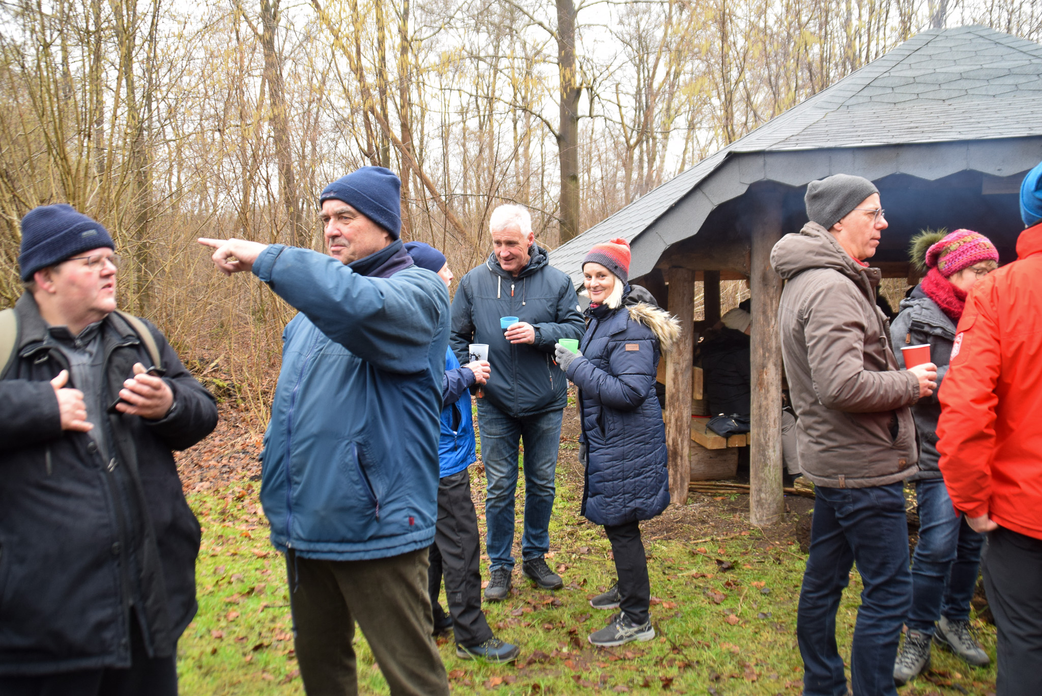 Peter Starck hatte die Wanderstrecke und das Grünkohlessen hervorragend organisiert. Wir starteten am Burgberg in Wredenhagen und wanderten am Forsthaus vorbei bis zum Forst am Demminer See. Unterwegs überraschte uns Berti Schulz und Tom Sadra mit einer kleinen warmen Stärkung am Feuer in der Rotunde am See. Mit einer Distanz über insgesamt knapp sechs Kilometer, war die Strecke für alle Teilnehmer zumutbar.