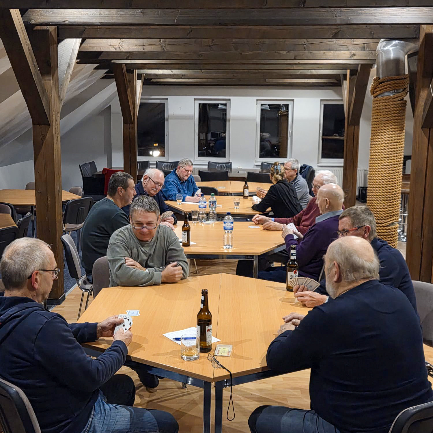 ... die Zeit der anderen Aktivitäten des Vereins. Dazu gehört auch der traditionelle Kartenabend.Auch wenn dieses Hobby von den jüngeren Mitgliedern nicht mehr so intensiv gepflegt wird, gibt es doch eine Gruppe von Vereinsmitgliedern, die regelmäßig Skat oder Rommé spielen und somit auch gern an dem Turnier im Verein teilnehmen.In diesem Jahr waren es elf Skatspieler und sechs Romméspieler, die den alljährlichen Kampf um die „Wurst“ aufnahmen. Peter hatte wie schon so oft die nötigen Vorbereitungen getroffen und auch die Absprache mit dem Regattahaus organisiert, sodass jeder Spieler ein leckeres Essen vorbestellen konnte, um es dann in der ersten Pause einzunehmen. Damit war die Grundlage geschaffen, beim Skat in drei Runden und beim Rommé über den gesamten Abend hinweg die Sieger und Platzierten zu ermitteln.Beim Skat stellt sich dabei immer die Frage, inwieweit es gelingt, die Krugmänner im Zaum zu halten. Bei Udo hat das diesmal sehr gut geklappt, dafür hat Hans-Dieter dann gezeigt, wie man trotz falschem „Drücken“ in einem Spiel dennoch den Gesamtsieg erringen kann. Herzlichen Glückwunsch dazu!Es war wie immer ein sehr netter Abend, der durchaus noch mehr Teilnehmer vertragen könnte. Beim Rommé hat Eva den anderen mal wieder gezeigt, wer hier die Königin ist, aber auch dort war die Stimmung wie immer sehr gut. Nach einer erneut sehr stimmungsvollen Siegerehrung konnten sich alle gut gelaunt auf den Heimweg begeben. Vielen Dank noch einmal an Peter und die Supporter im Hintergrund, die es ermöglicht haben, in diesem Jahr bei angenehmen Temperaturen im Vereinsraum den Kartenabend zu erleben.Bis zum nächsten Mal – vor Beginn der Segelsaison!Heino L. Ergebnisse